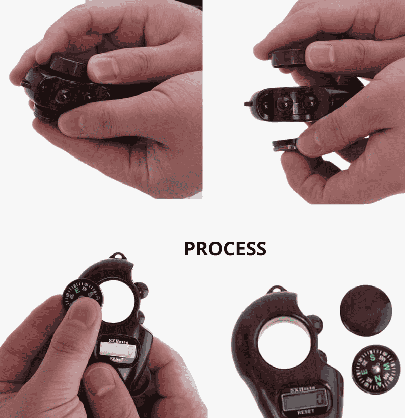 This Finger Tally Counter combines a traditional wooden tasbeeh look with a clear digital display for easy prayer, zikr, mantra chanting, and meditation counting. It features a built-in compass to help find the correct prayer direction anytime, anywhere. Lightweight, ergonomic, and designed for smooth, silent one-hand operation for daily use. Compact and portable, it fits easily in your pocket or bag, making it perfect for home, travel, religious use, and gifting.