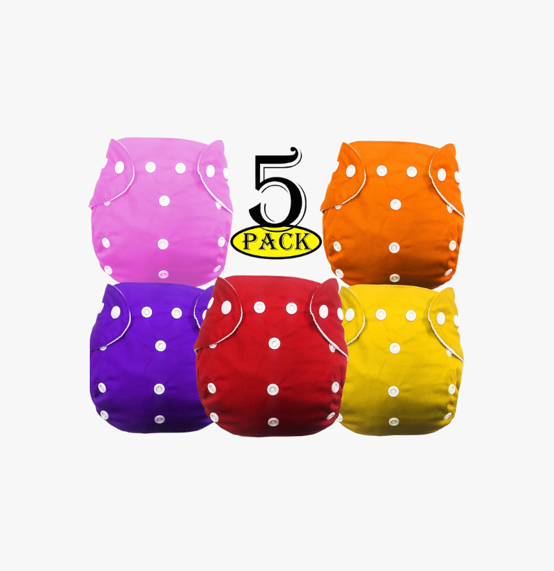 Upgrade your baby’s diapering experience with the Adjustable Quick Dry Washable Reusable Cloth Diaper Nappy. This 5+5 combo pack comes with 5 reusable cloth diapers and 5 highly absorbent 5-layer microfiber bamboo insert pads. Suitable for babies and toddlers aged 0–36 months, this eco-friendly diaper set provides reliable leak protection, fast drying performance, and all-day comfort. Switch from disposable diapers to a sustainable, budget-friendly diapering solution that is gentle on your baby’s skin and better for the environment.